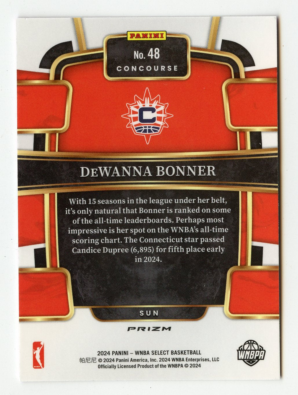 A299 DEWANNA BONNER 2024 SELECT PINK ICE REFRACTOR CONCOURSE #48 SUN