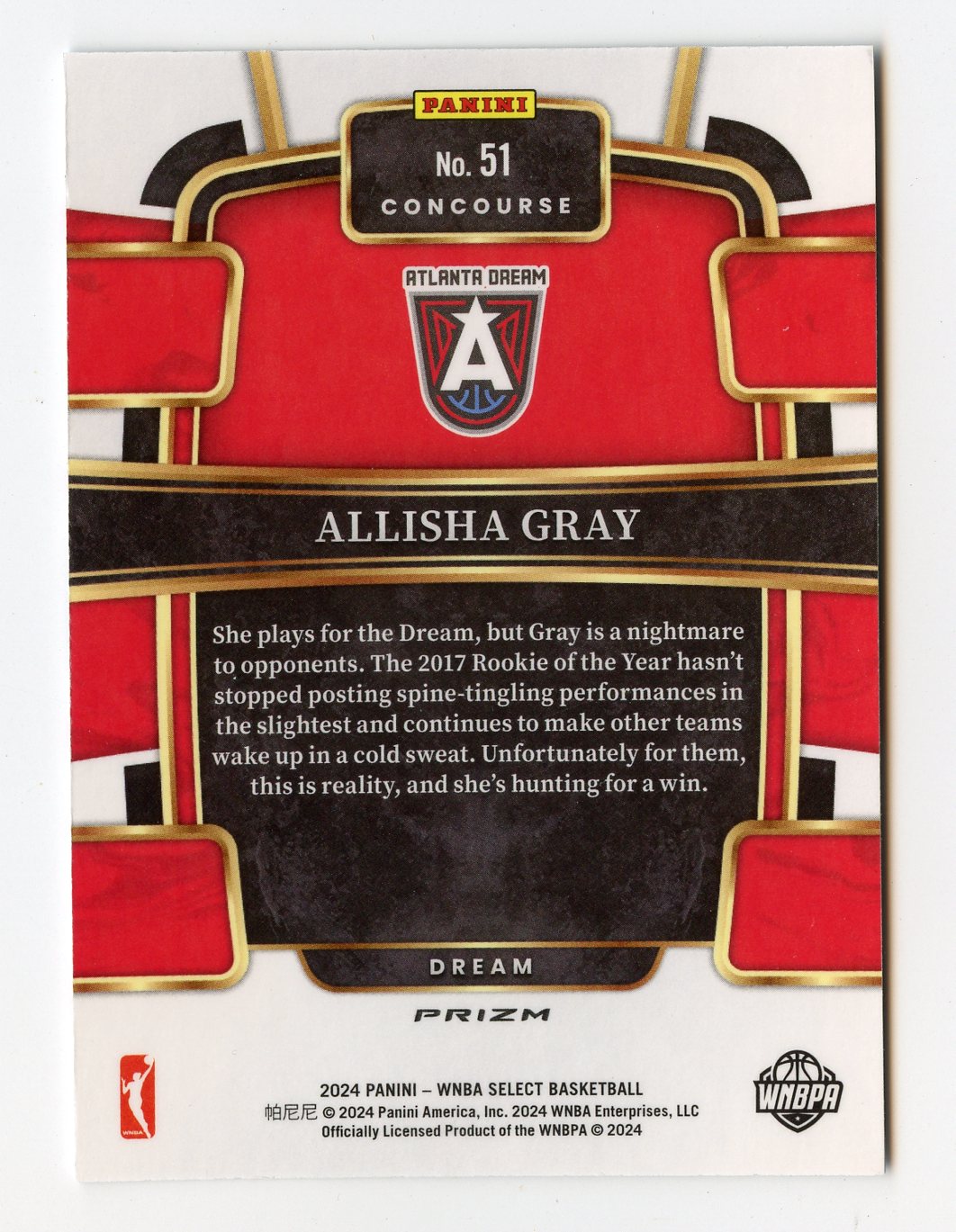 A331 ALLISHA GRAY 2024 SELECT WNBA SILVER PRIZM CONCOURSE #51 DREAM