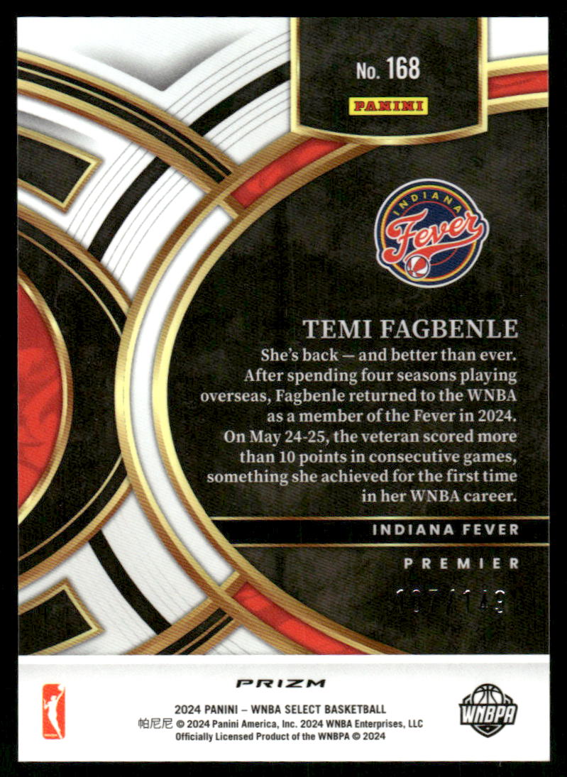 A344 TEMI FAGBENLE 2024 SELECT WNBA PURPLE PRIZM PREMIER 107/149 #168 FEVER