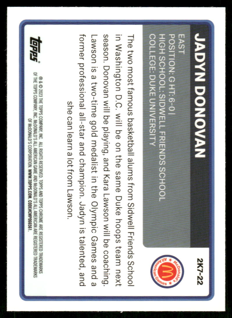 A354 JADYN DONOVAN 2023 TOPPS CHROME LAVA REFRACTOR #2K7-22 DUKE