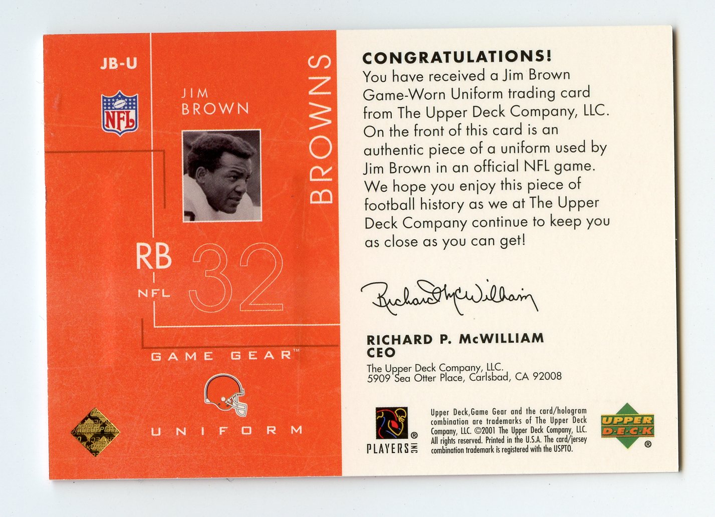 JIM BROWN GAME WORN JERSEY 2001 UPPER DECK GAME GEAR - CLEVELAND BROWNS