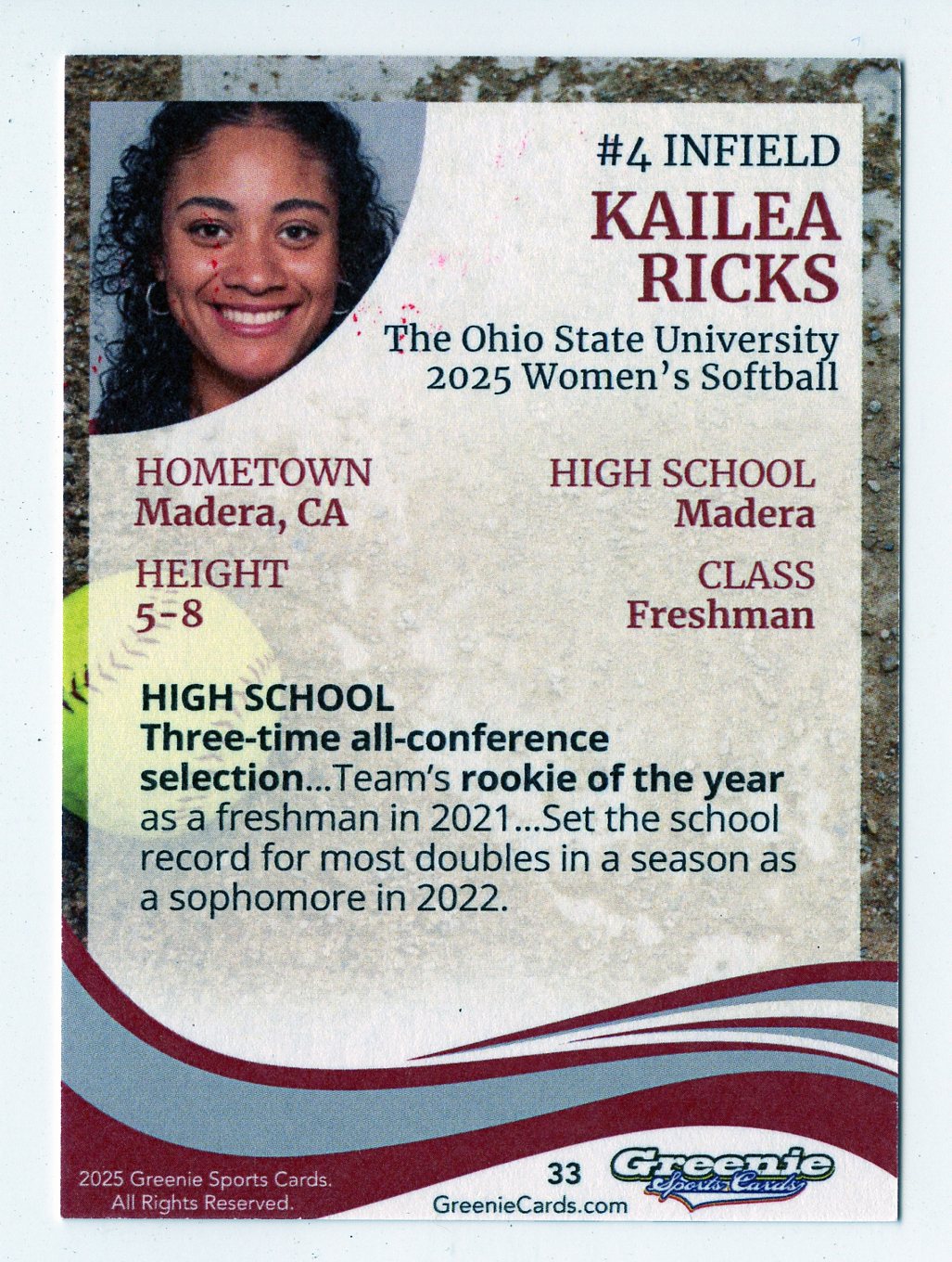 KAI RICKS Certified Autograph Trading Card 2025 Greenie Sports Cards NIL Trading Card