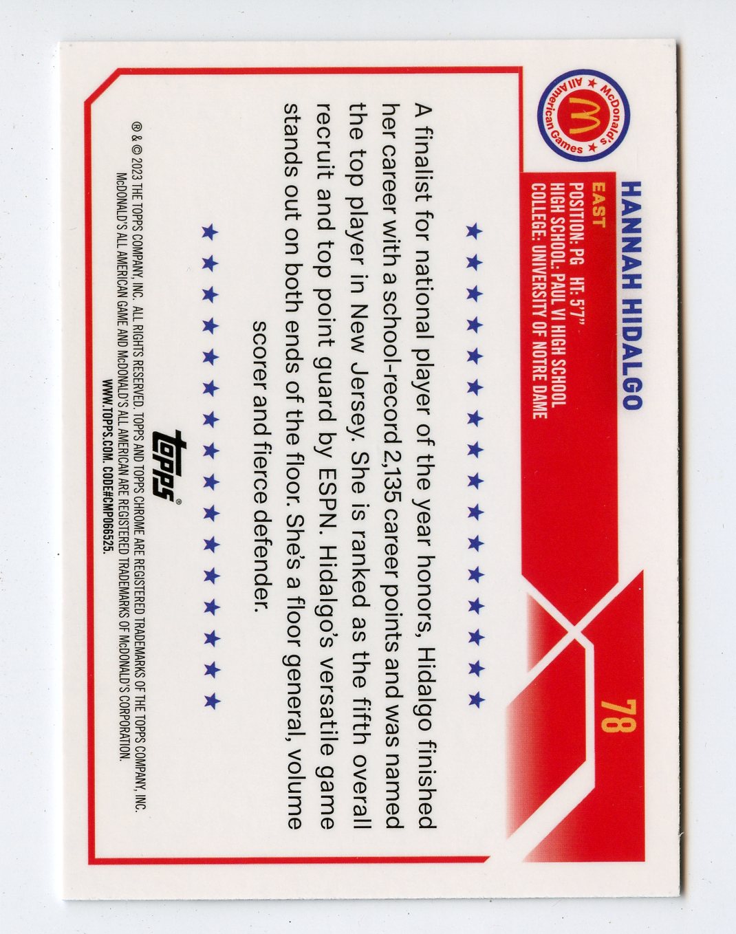WNBA20 HANNAH HIDALGO 2023 TOPPS CHROME MCDONALD'S ALL AMERICAN #78 NOTRE DAME