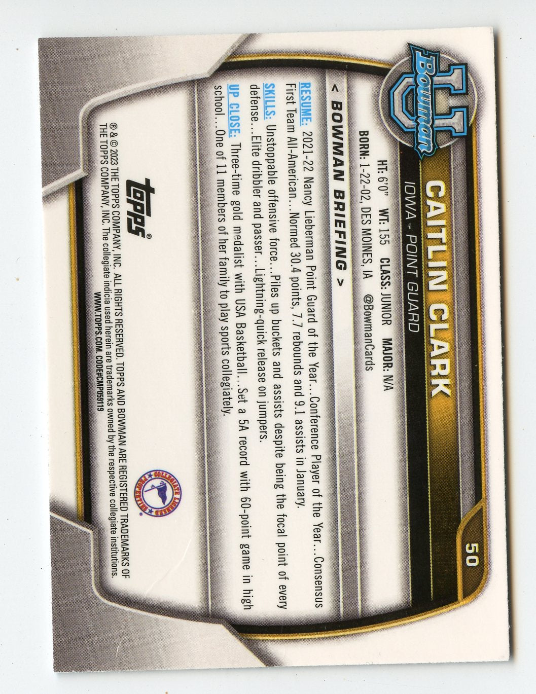 WNBA5 CAITLIN CLARK 2023 BOWMAN CHROME 1ST #50 IOWA