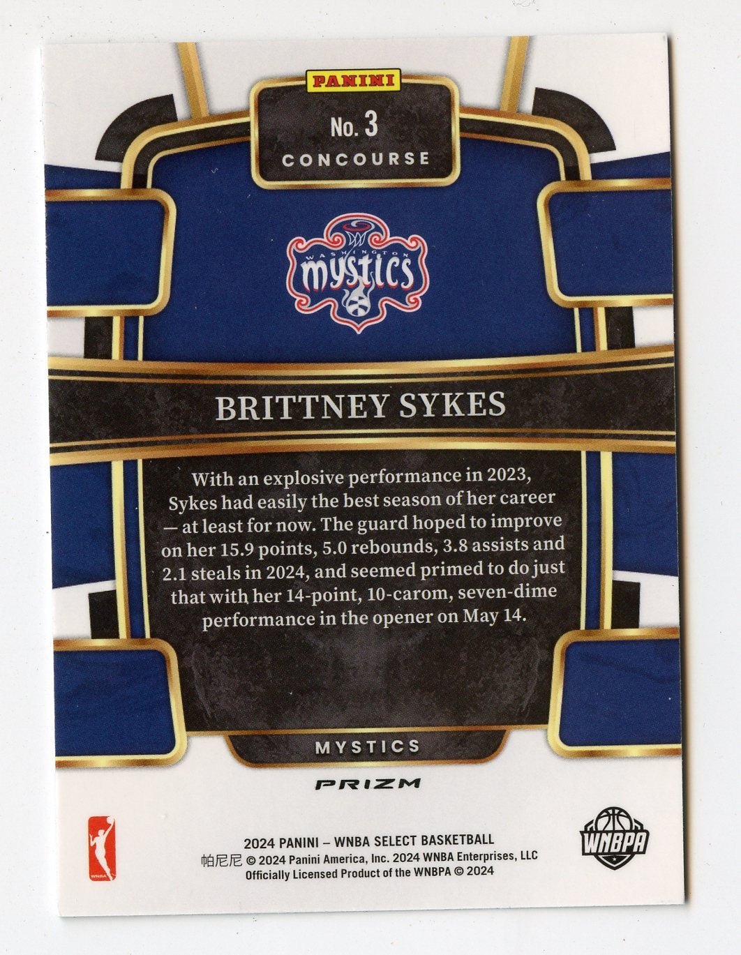 WNBA49 BRITTNEY SYKES 2024 SELECT WNBA GREEN CRACKED ICE PRIZM CONCOURSE #3 MYSTICS