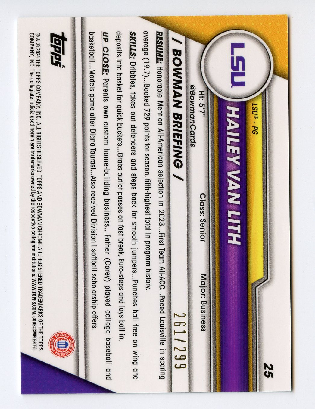 WNBA10 HAILEY VAN LITH 2024 BOWWMAN CHROME U 1ST TEAL REFRACTOR 261/299 #25